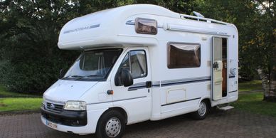 Sleeps 5 with large over-cab bed, 4 belted travelling seats.